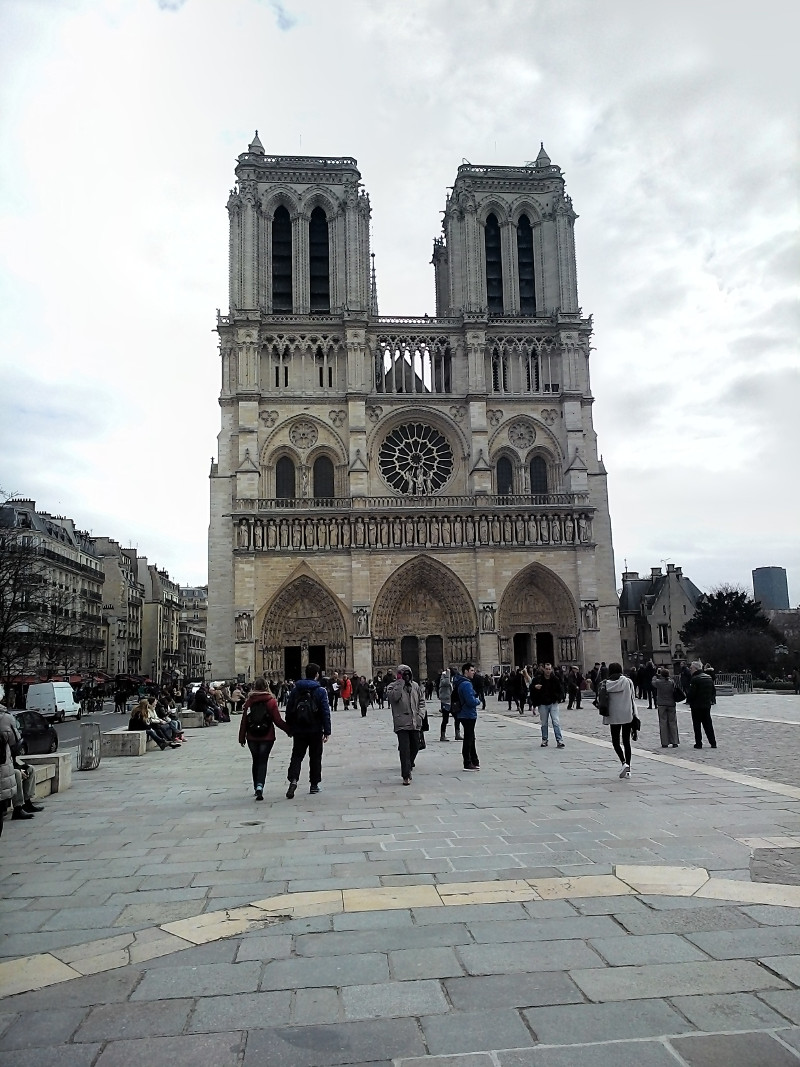 Me costó no dormirme en el tren, demora como 40 minutos creo. Elegí la parada que está en la Catedral de Notre Dame. Estaba lleno de gente, turistas de todos lados y una cola enorme para entrar. Muchos palitos de selfie. Di unas vueltas por la plaza frente a la catedral y saqué algunas fotos: