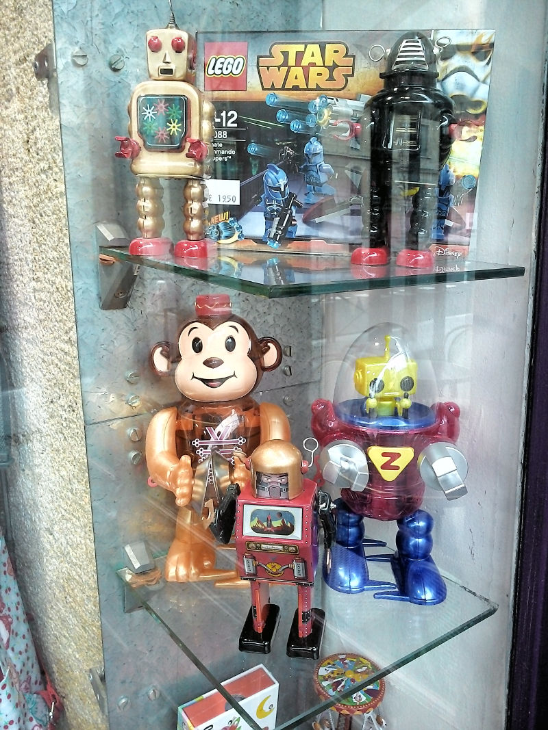 Seguí mi camino hacia la torre. Me encontré con una juguetería que por lástima estaba cerrada. Porque sino me hubiera RE comprado ese hermoso Robby de la película Forbidden Planet y/o algún otro robotito: