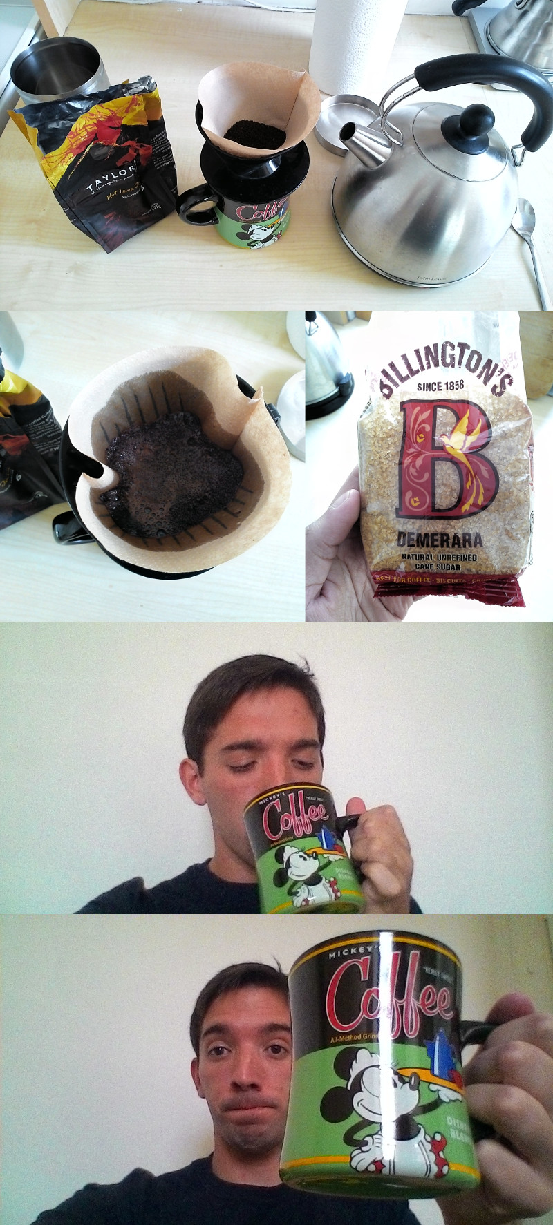 Después de almorzar me decidí a aprender a descubrir cómo podía hacer café en el apartamento. Una imagen vale más que mil palabras así que: