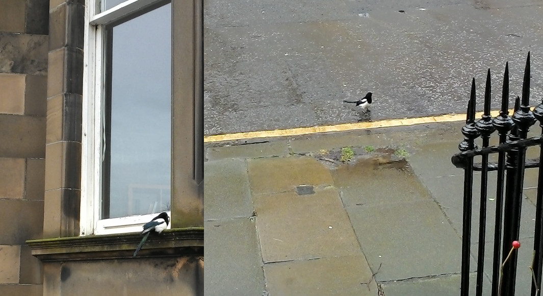 A la vuelta me encontré con un pajarito en la ventana del apartamento y cuando fui a abrir la puerta vi uno parecido o el mismo en la calle: