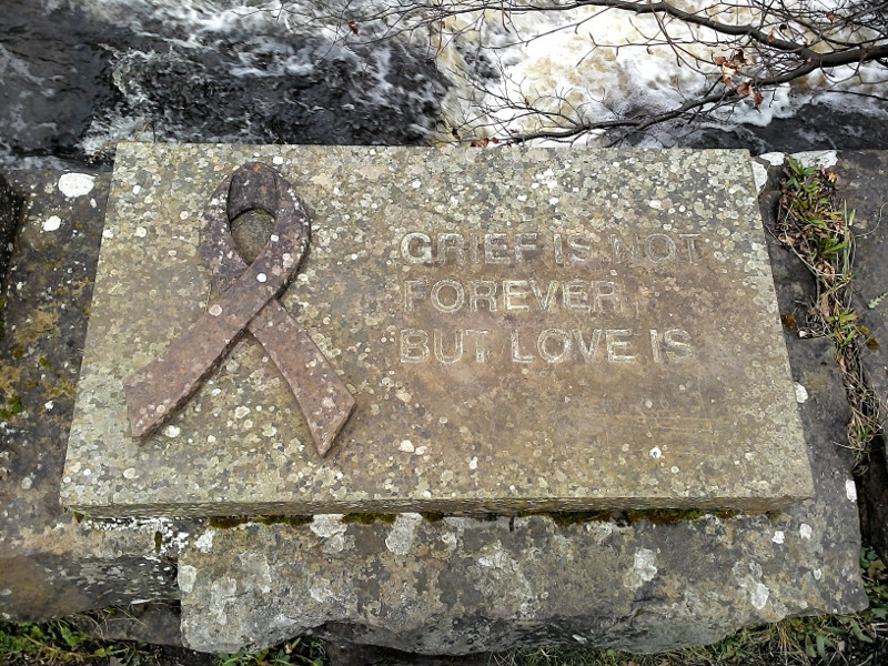 En una parte del recorrido había un banco diseñado como con lazos rojos, y esta inscripción. Es un memorial a la vida contra la lucha del Sida.