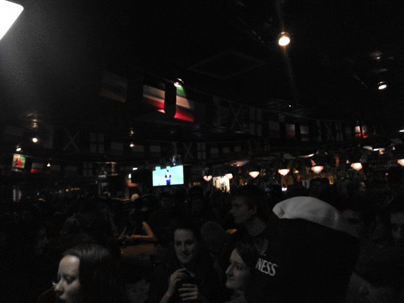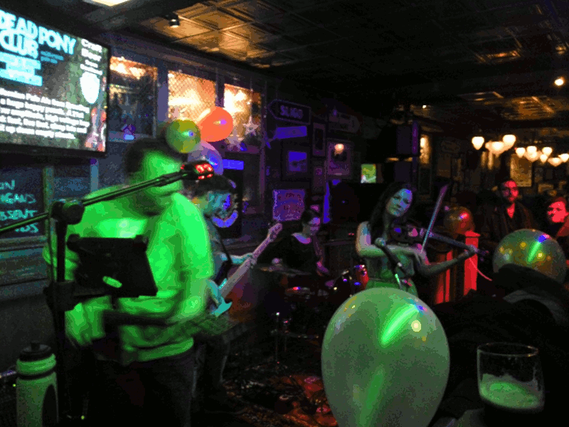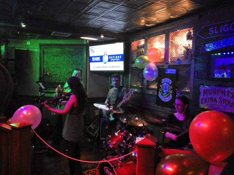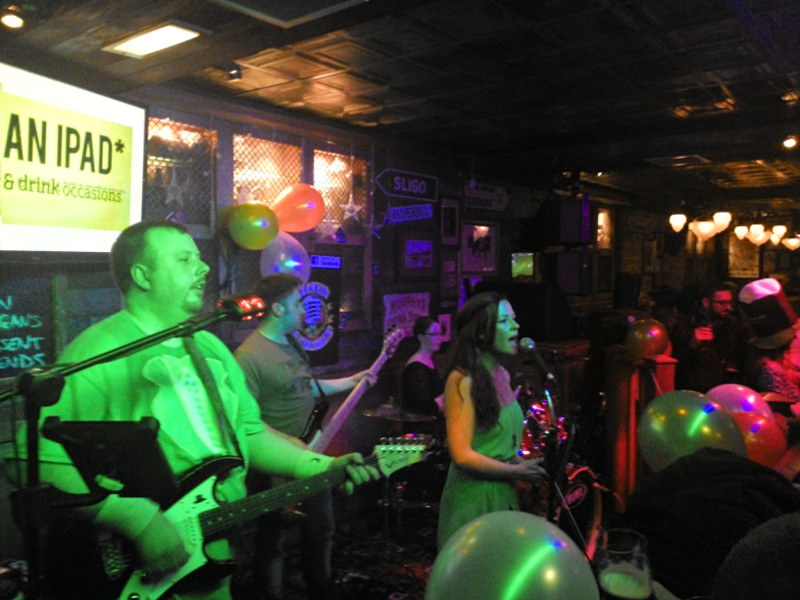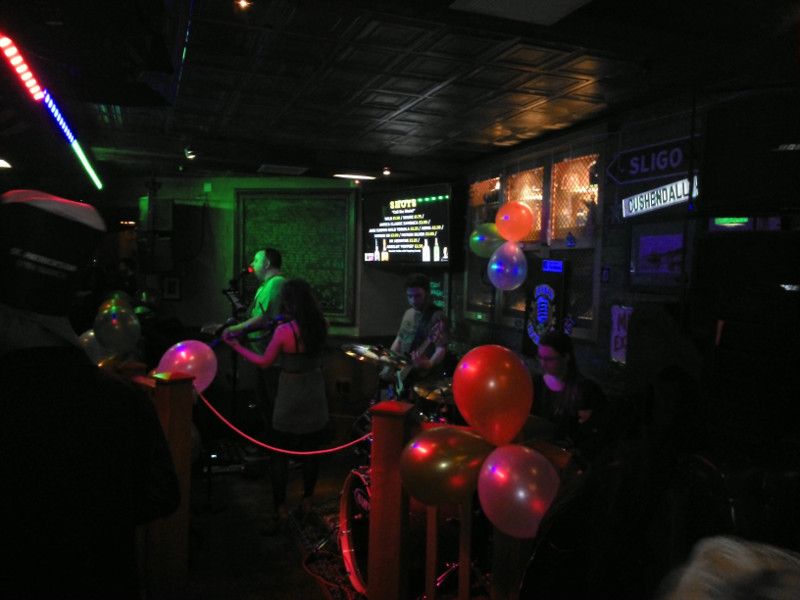 Terminé en Finnegan’s Wake, bar típico irlandés que prometía música en vivo. Llegué como a las 18:00 y cerca de las 19:00 arrancó la música en vivo. La banda era Folkin Shenanigans, con un cantante guitarrista, un bajista, una violinista cantante y una baterista.