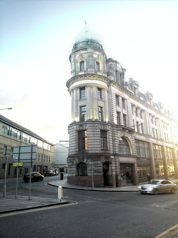 Volviendo a casa ese mismo día le saqué una foto a un edificio por el que paso siempre y está bastante pintoresco. Voy a intentar sacarle una foto más tarde cuando el sol está más oculto y con las luces de la fachada prendidas se ve muchoe mejor: